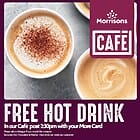 CLAIM OFFERIf you visit a Morrisons Café after 2.30 pm, you can get a free hot drink! You will need a More Card to get the dri … Read more