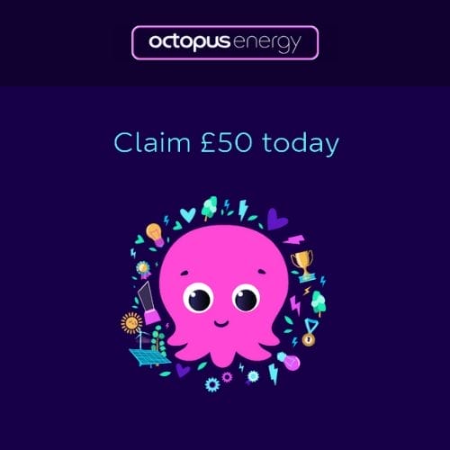 At the time of writing, Octopus Energy has a 5-star rating on Trustpilot, so you know they are an energy supplier you can trust. Press the green button below to go to the Octopus Energy website to read all the information you need and get a quote. By doing so, you will also get access to the free £50 credit offer, so don’t miss out!