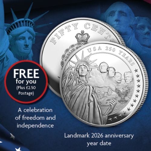 Press "CLAIM OFFER" to go to The London Mint Office website, where you can order your Official USA 250 Celebration Coin. Please note that while this celebratory coin is free, there is a ยฃ2.50 postage fee which you can pay while ordering.